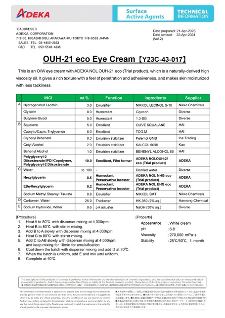 Cosmetic Formulary_Eye Cream_ADEKA NOL OUH-21 eco