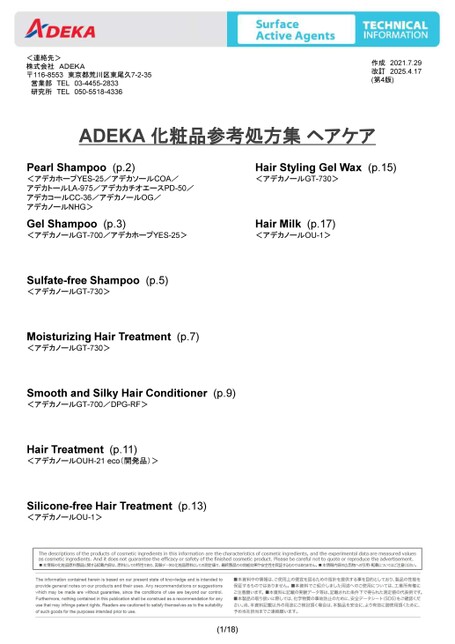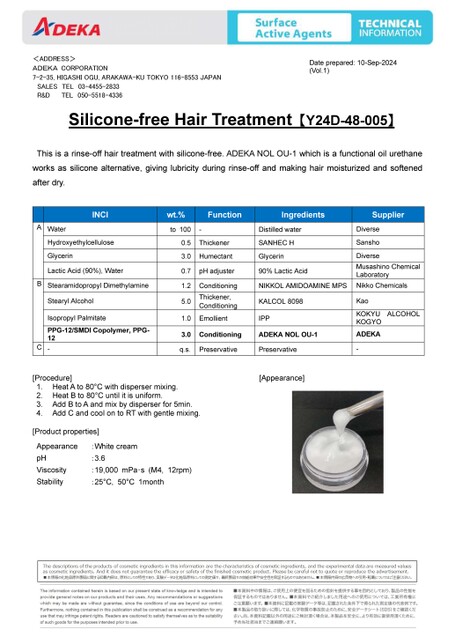 Cosmetic Formulary_Silicone-free Hair Treatment_ADEKA NOL OU-1