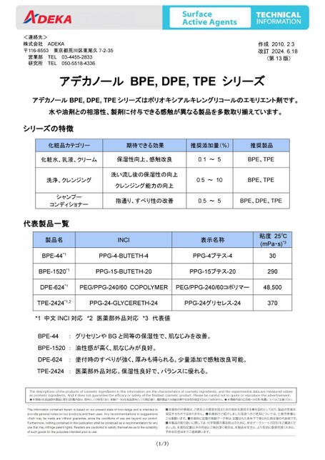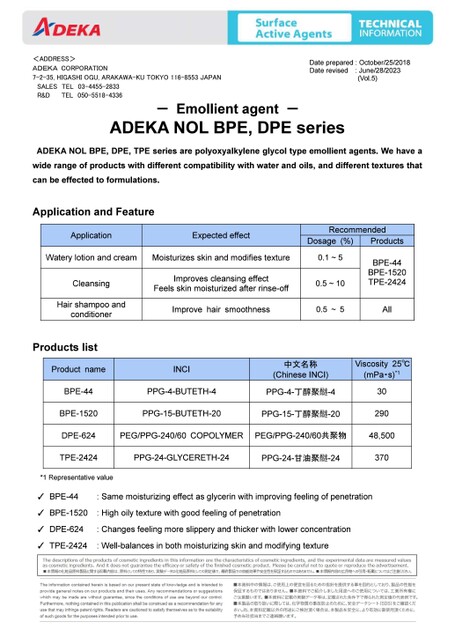 TDS_Emollient agent_ADEKA NOL BPE, DPE, TPE series